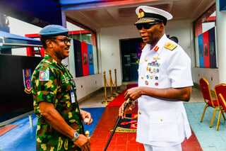 The Commandant, Nigerian Armed Forces Resettlement Centre (NAFRC), Air Vice Marshal Nnaemeka Ilo, on Tuesday received the Flag Officer Commanding Western Naval Command (WNC), Rear Admiral Abubakar Mustapha (mni), who paid him a courtesy visit aimed at strengthening inter-service collaboration.