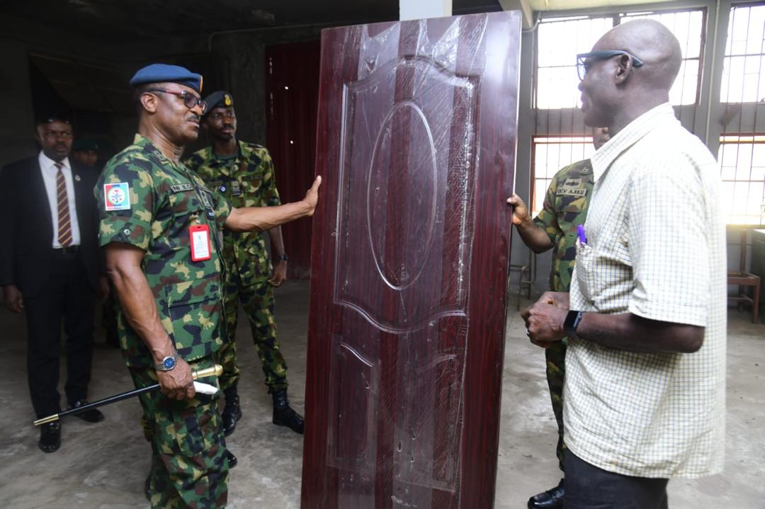 The Commandant thereafter inspected several workshops across the Centre, as including automobile, auto-mechanic, weaving and textile, carpentry, woodwork, leather works, ceramics, foundry, fabrication, welding, plumbing, waste management, photography, and events management. others are, the agricultural wing, training battalion, medical centre, ICT centre, and the management wing.