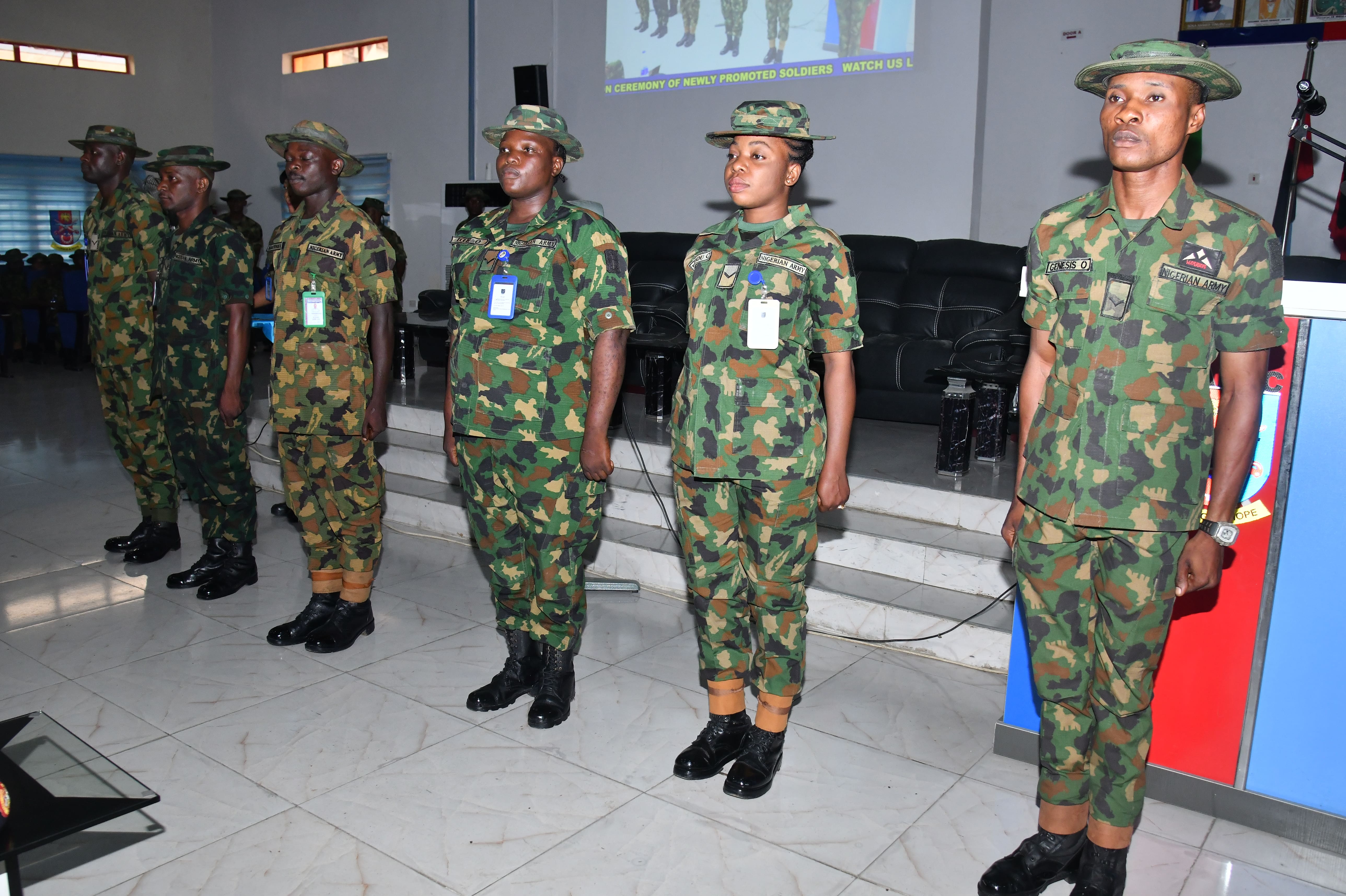 During the ceremony, which took place on Thursday in Lagos, the Commandant, Air Vice Marshal AH Amesinlola, represented by the Deputy Commandants, Major General EA Anaryu, congratulated the newly promoted soldiers, urging them not to forget the pillars of the Nigerian Armed Forces.